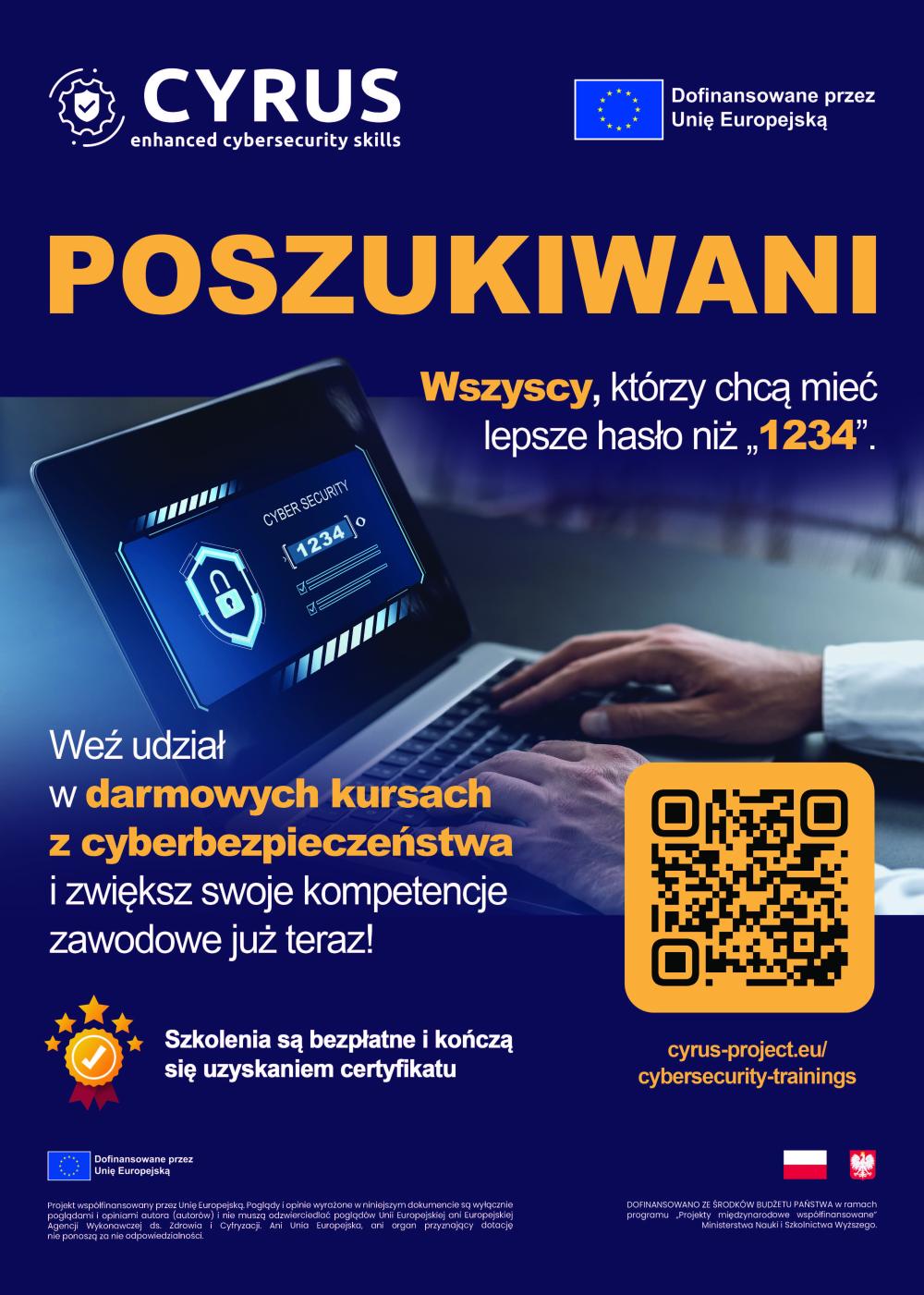 Wszystkie szkolenia są bezpłatne, a po ich ukończeniu uczestnicy otrzymują certyfikat CYRUS w języku angielskim.