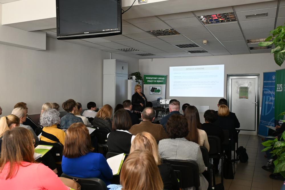 Powiatowy Urząd Pracy w Dębicy we współpracy z Państwową Inspekcją Pracy i Zakładem Ubezpieczeń Społecznych w dniu 30 stycznia 2025 r. zorganizował spotkanie informacyjne dla Pracodawców 2025, w którym uczestniczyło ponad 50 osób reprezentujących firmy i instytucje z terenu Powiatu Dębickiego.